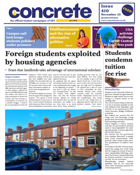 The Official Student Newspaper of UEA. Established • 19th November 2025 International Students in Norwich Face Housing Exploitation Exclusive story, interviewing an international student at the University of East Anglia about private agencies in Norwich exploiting international students.